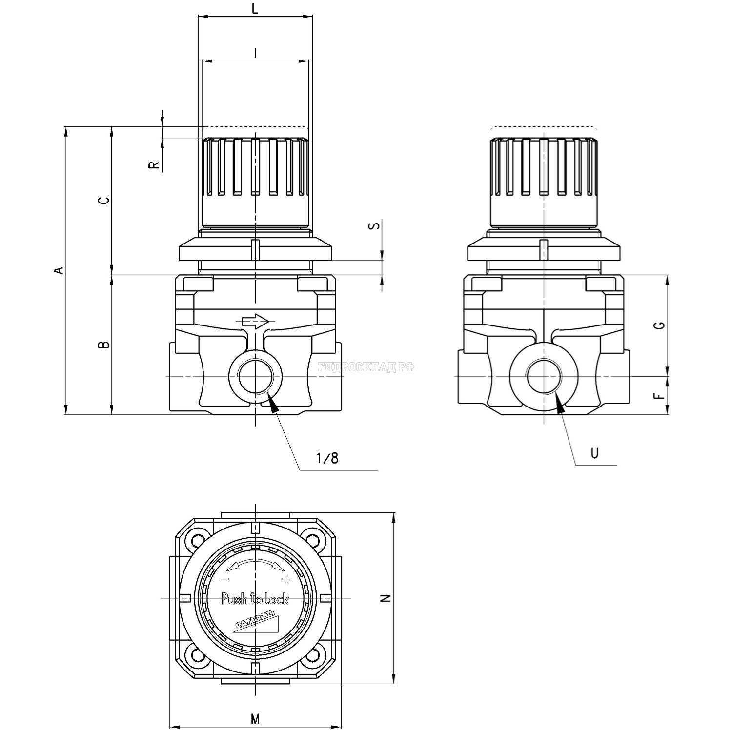 Регулятор давления воздуха серия M G1/8 WP=0.5-10 бар (Camozzi)