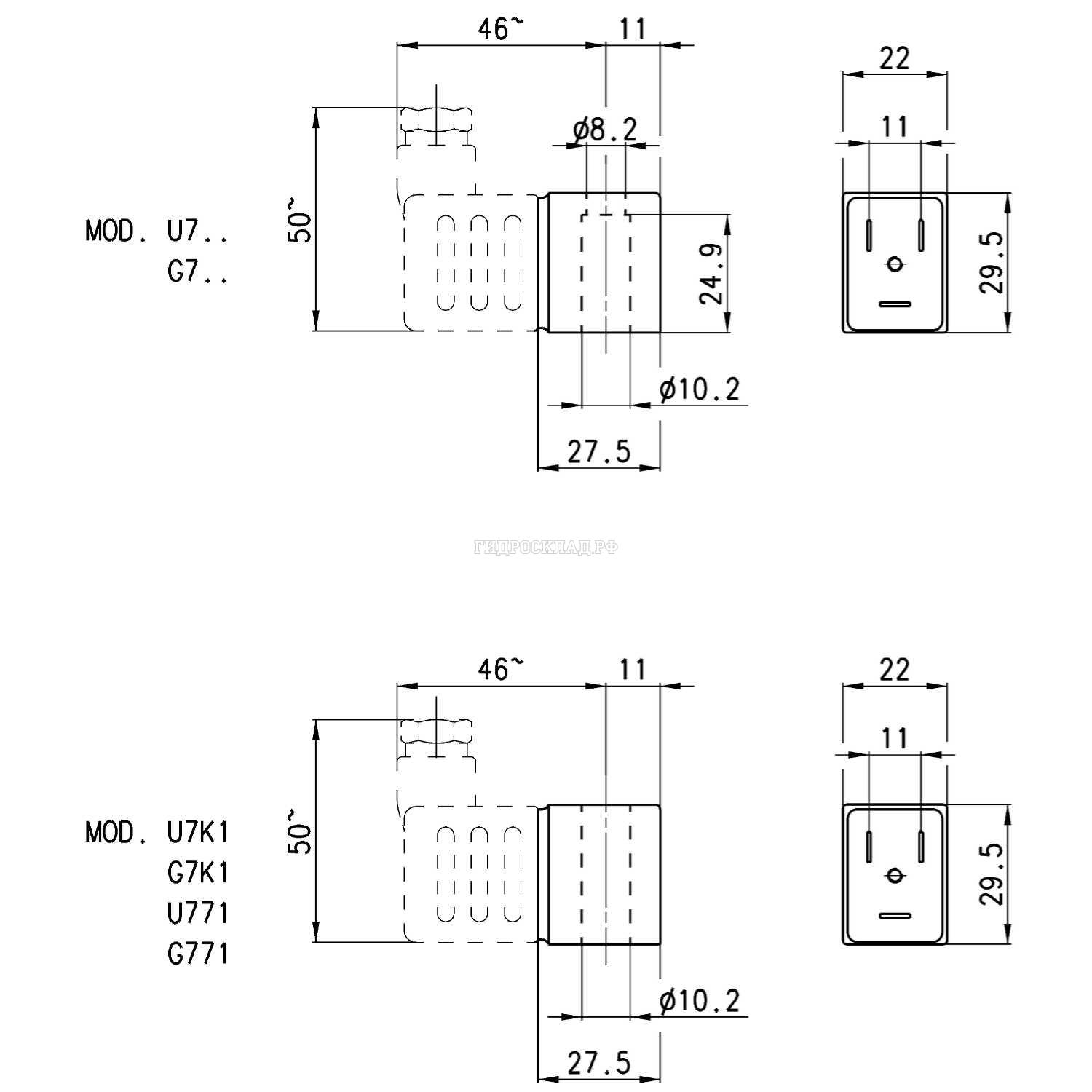 | Допустимый разброс напряженийV DC | Мод. A и U: ±10% Мод. B: ±5% |